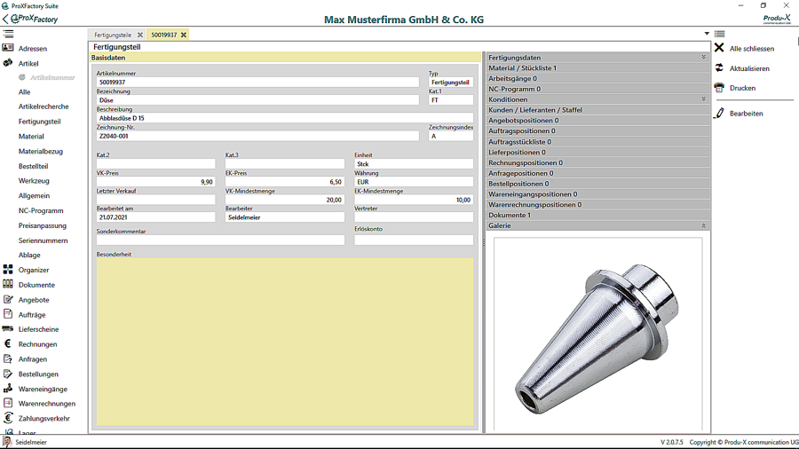 Schnelle Erstellung von Angeboten und Aufträgen für Einzel- und Serienteile. Keine Hinterlegung von Artikeln nötig oder Arbeitsplandaten.